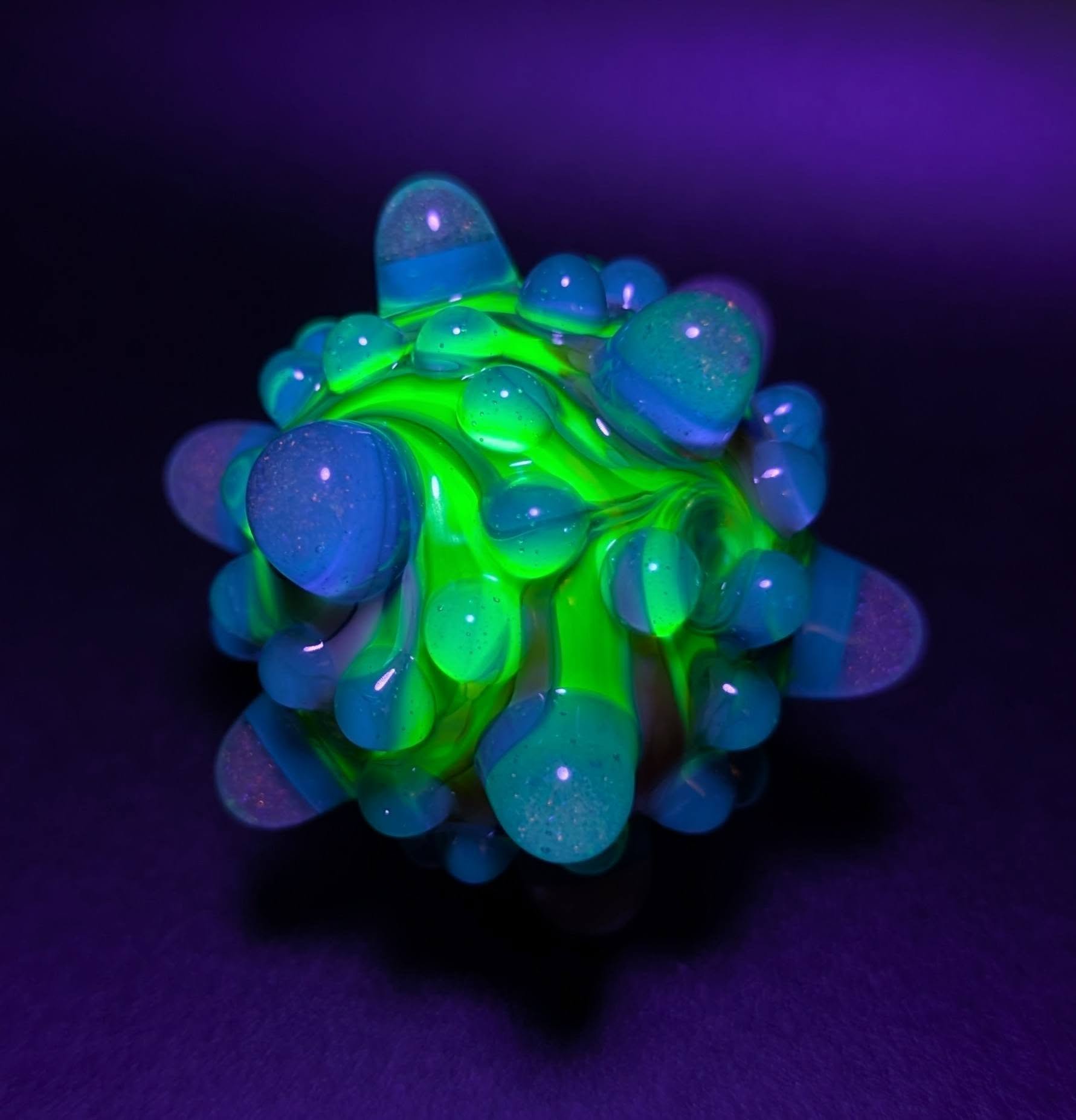 These awesome UV reactive gobstopper hobnails with a fun geometric hob pattern average size 1.8" made by Andrew are perfect for your black light display.