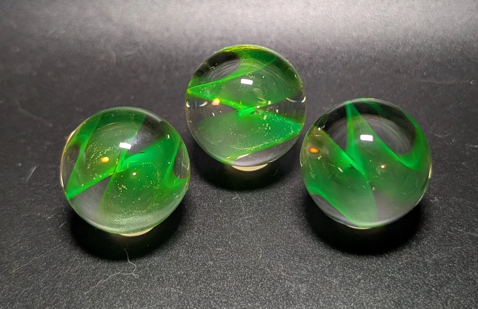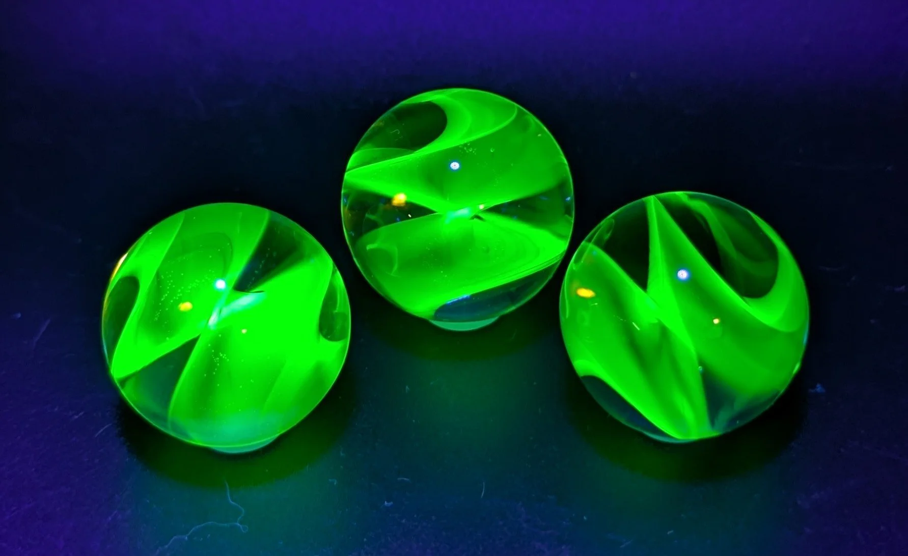 Average size 1.1” UV ribbon spiral marble made by Andrew kiln annealed and TI signed *this is for one marble, not the set, pictures are examples of what you will receive