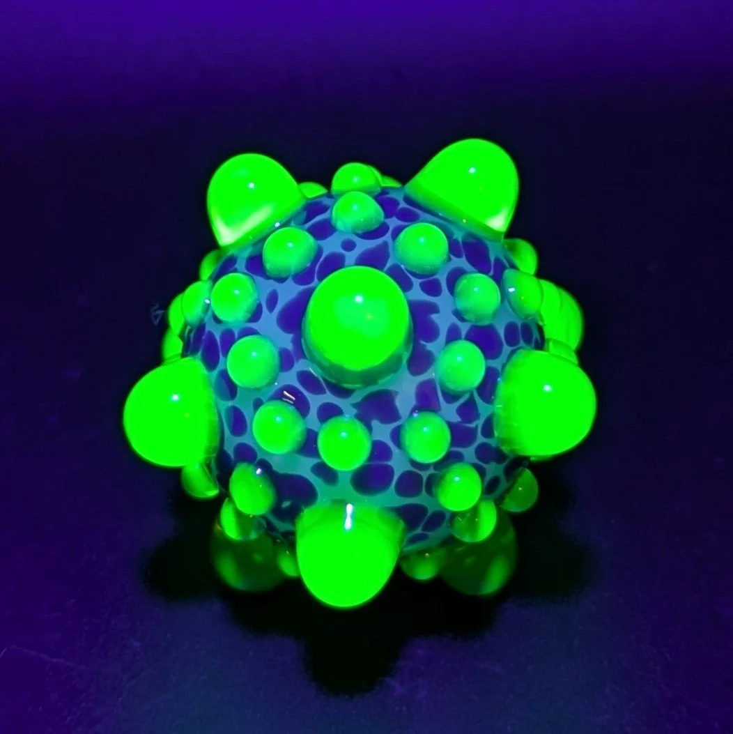 Shop › UV Geometric Hobnail Image 1 of 2 Image 2 of 2 UV Geometric Hobnail $56.00 sold out 1.86” UV reactive, hyacinth speckled, geometric pattern hobnail made by Andrew Sold Out Added! 1.86” UV reactive, hyacinth speckled, geometric pattern hobnail made by Andrew