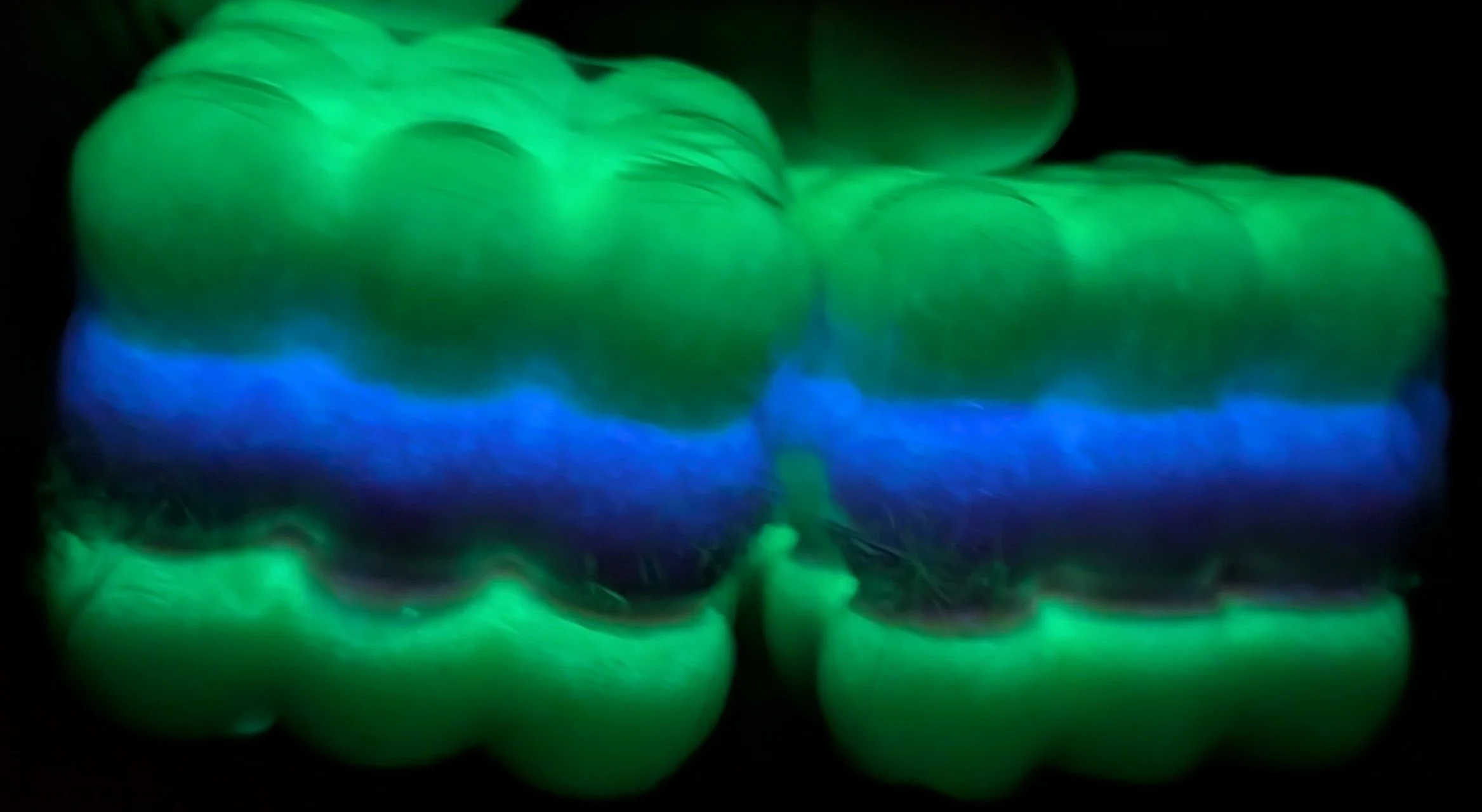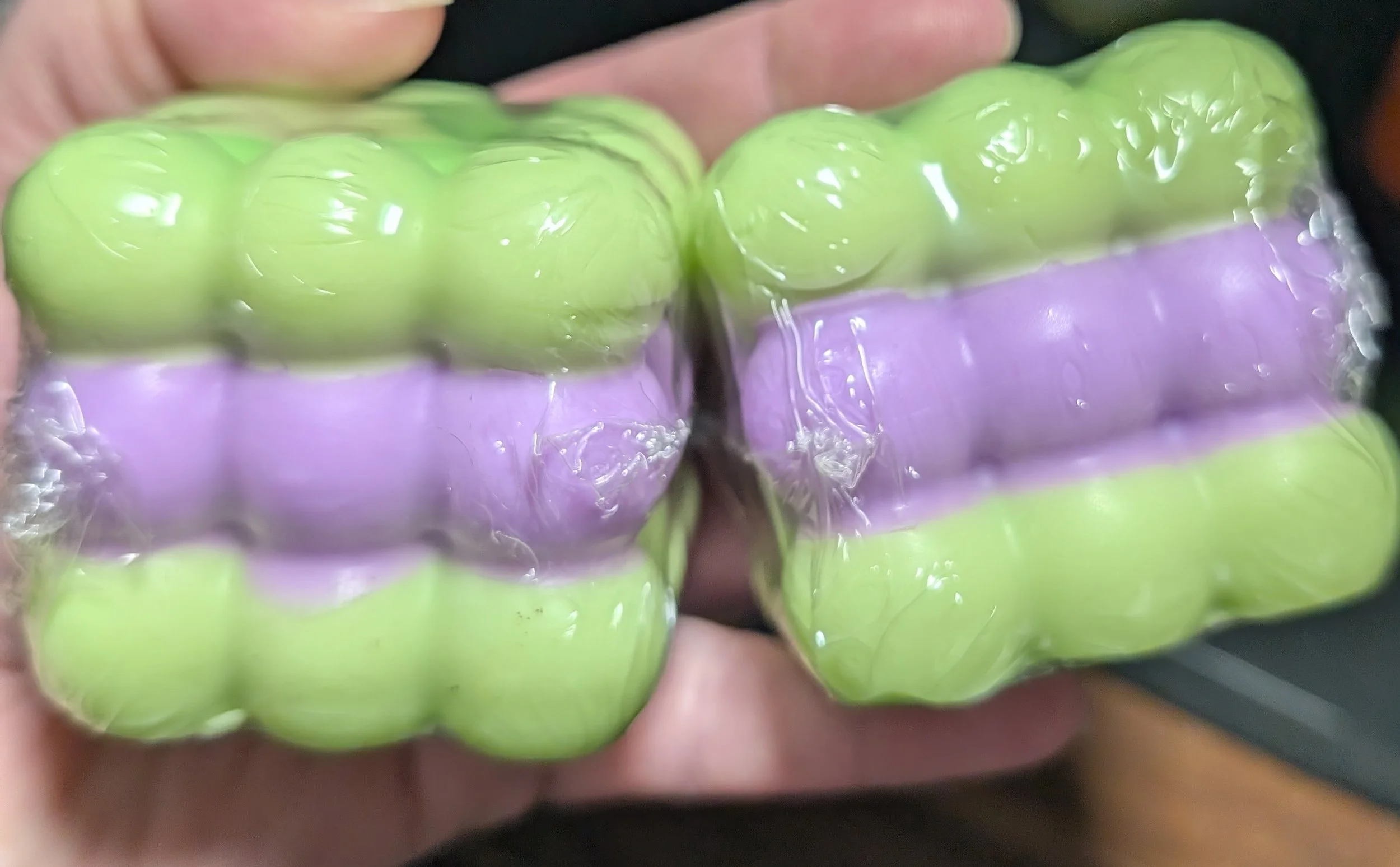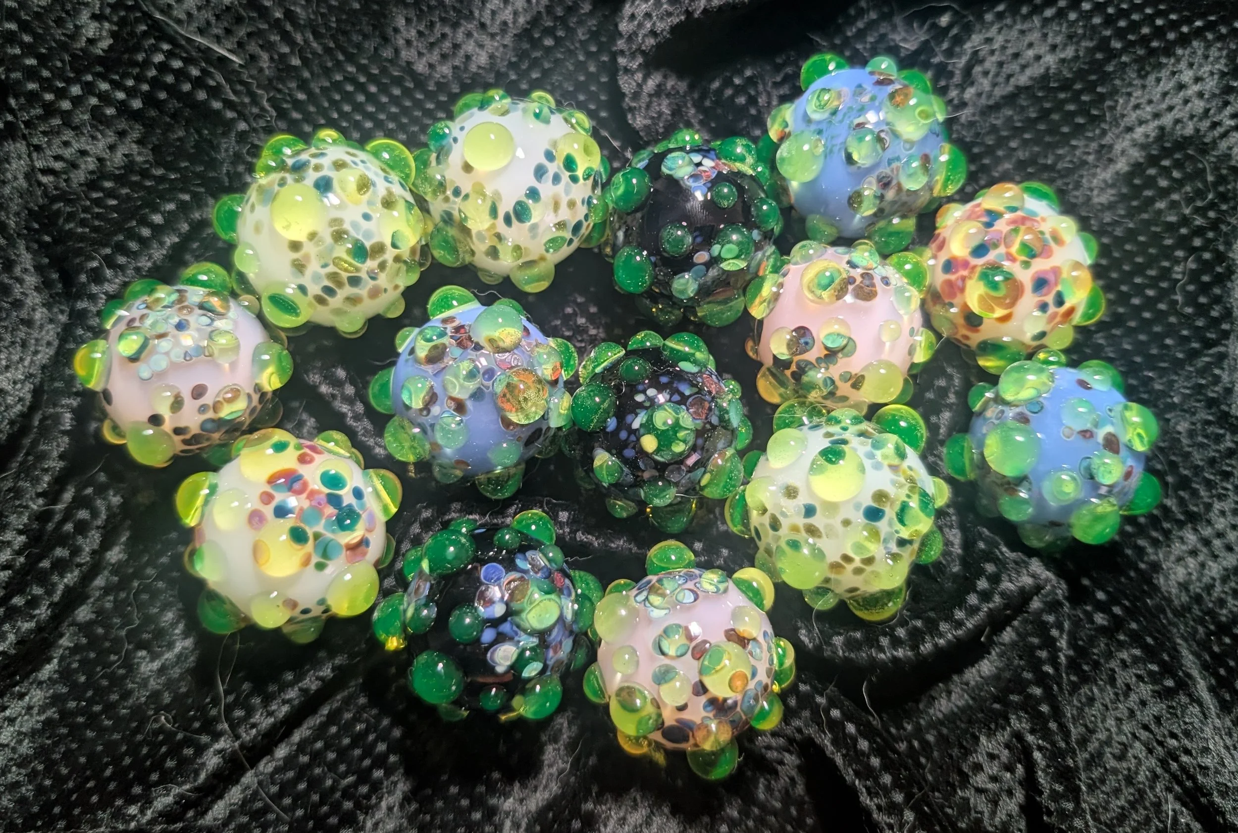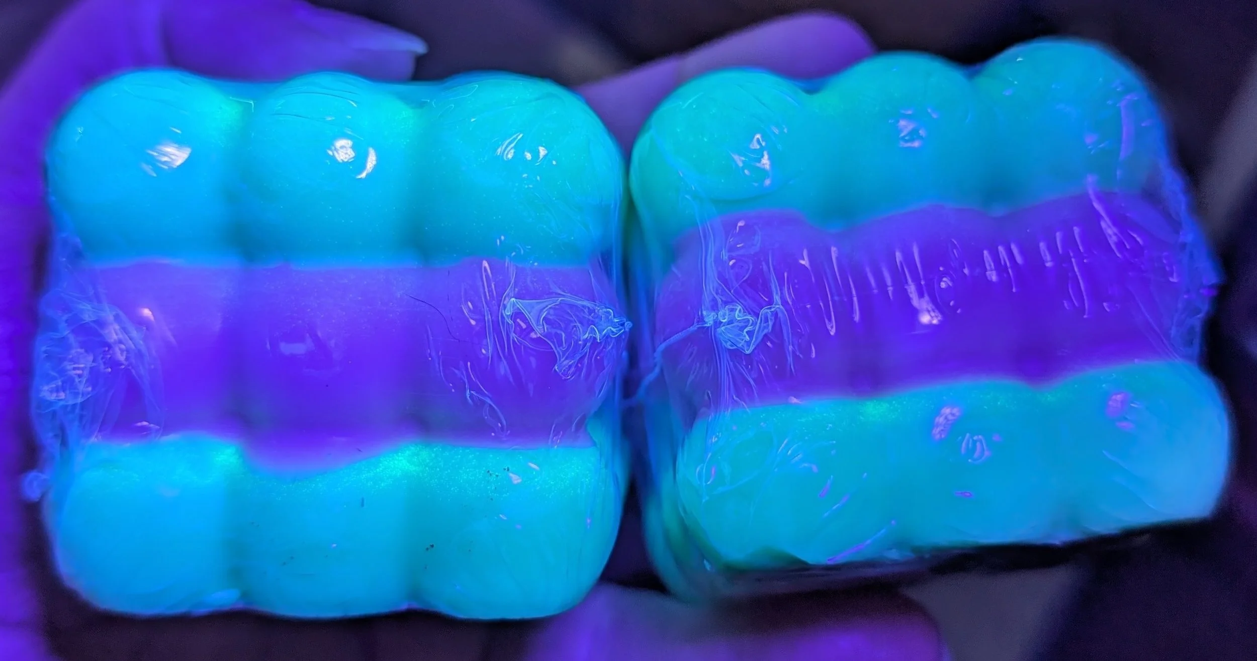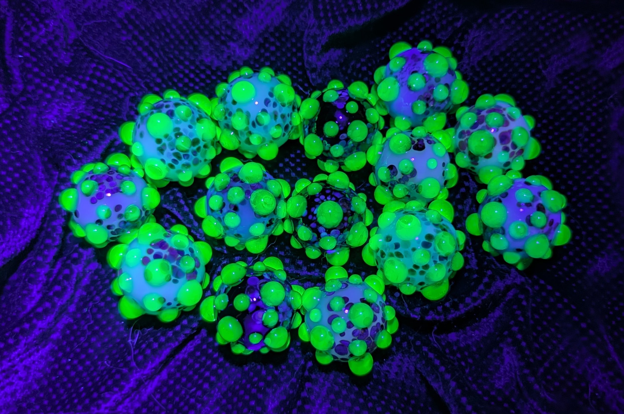 2.2” Mango scented handmade shea, mango and cocoa butter glow in the dark massaging soap bar with a surprise toxic bubbles UV Hobnail marble inside average size 1.5” made by Tina